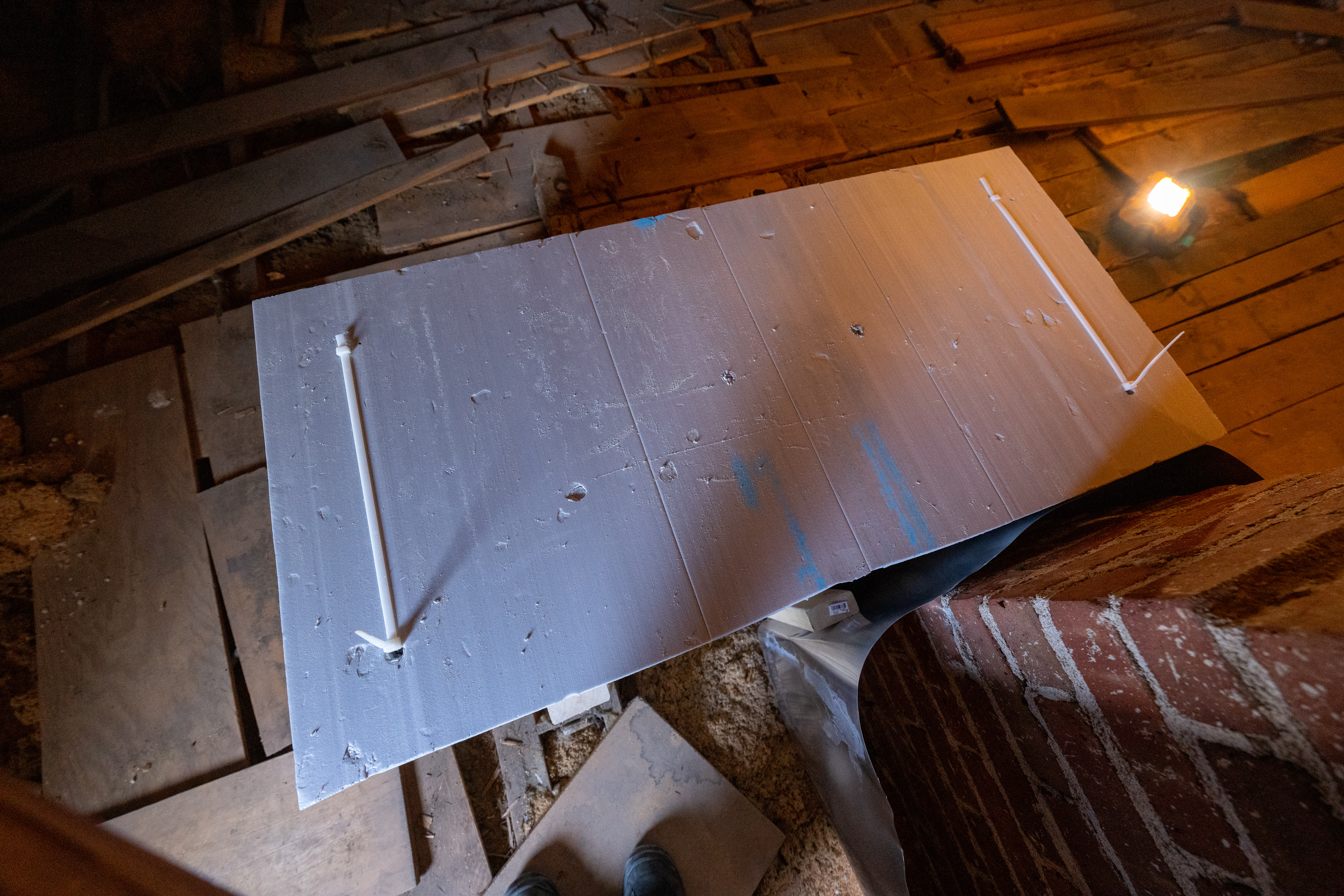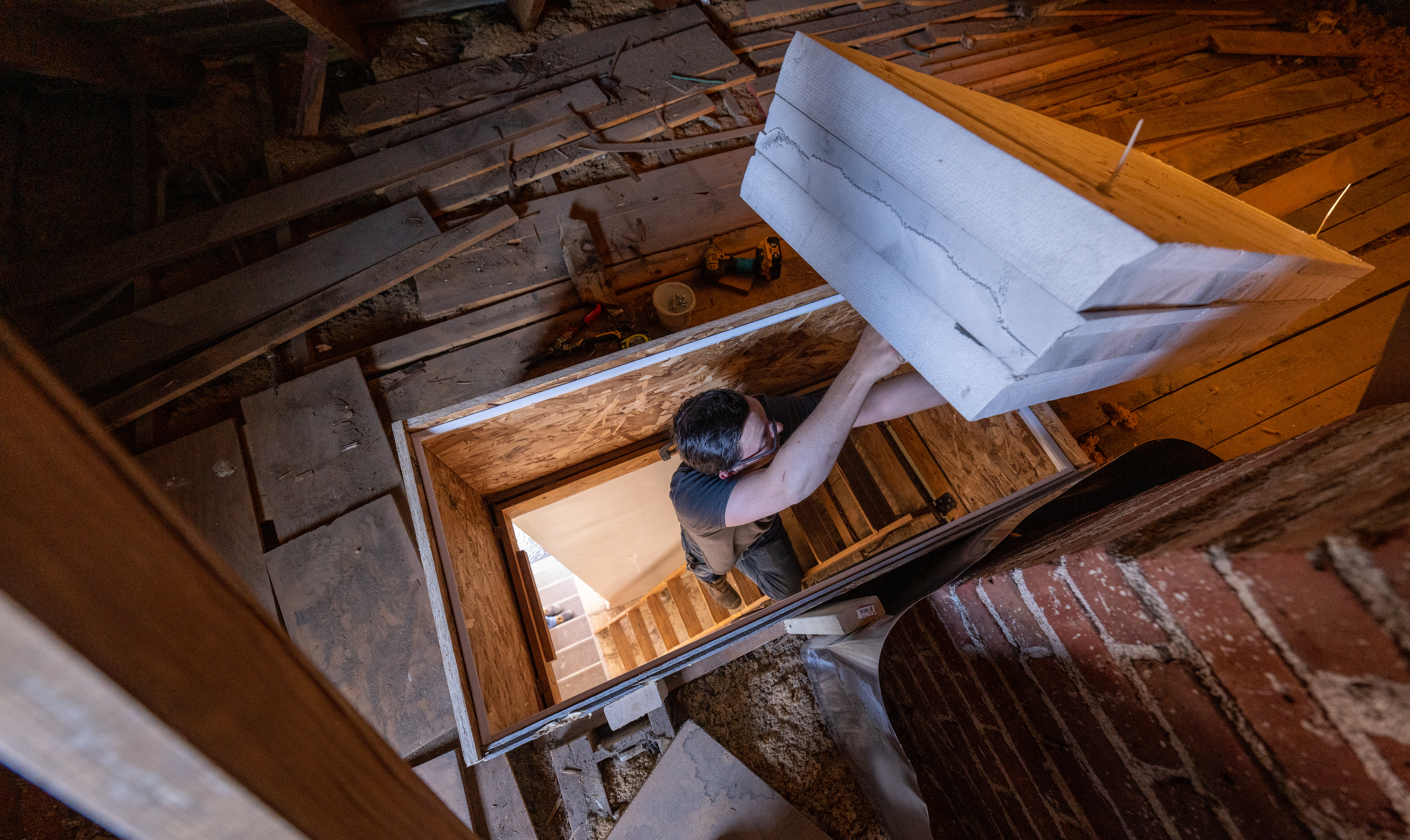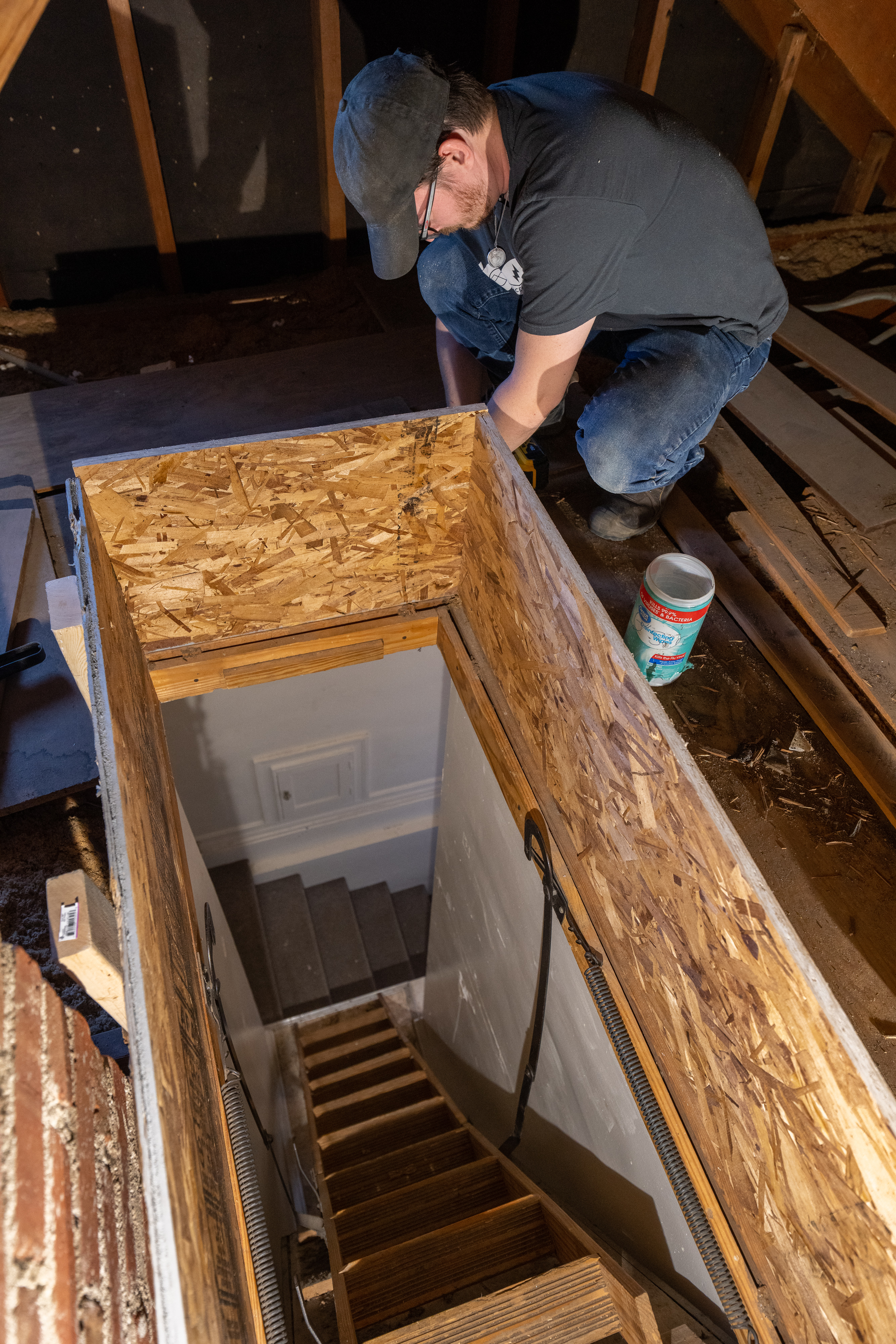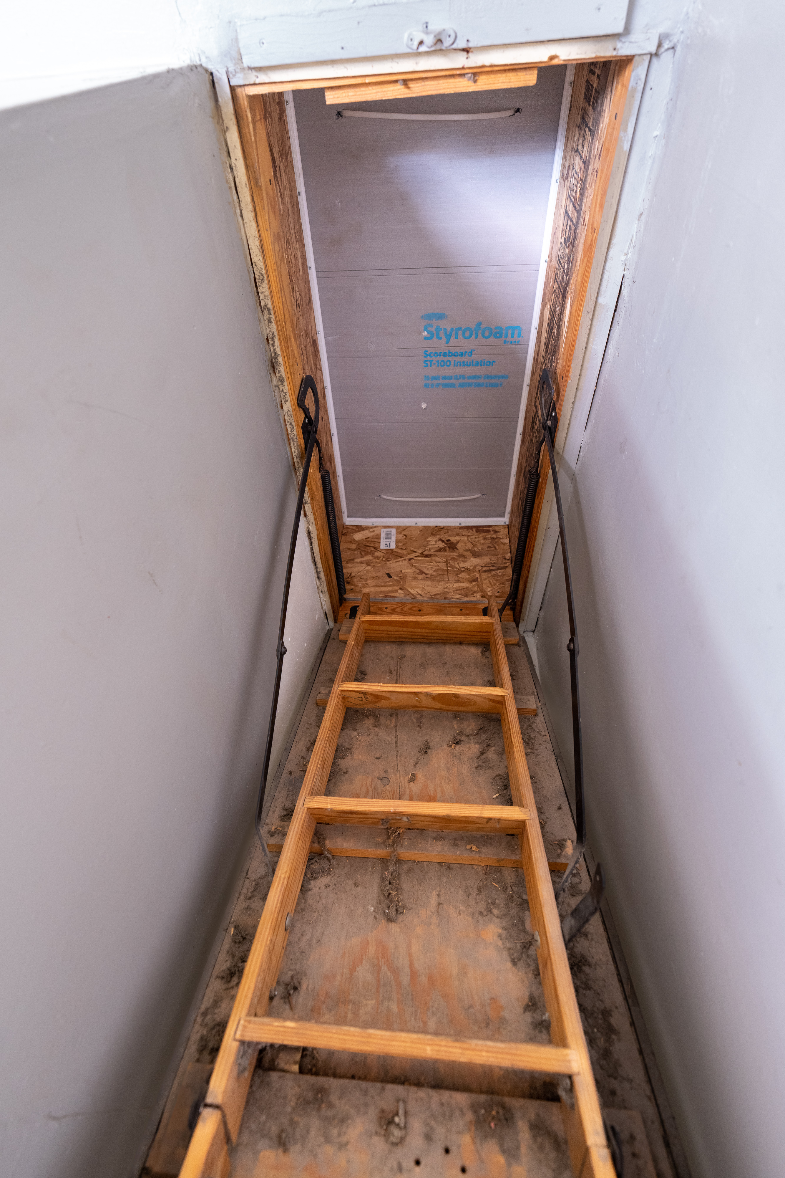 Attic access door safely and durably sealed and insulated to prevent air movement @ 50 Pascals of pressure